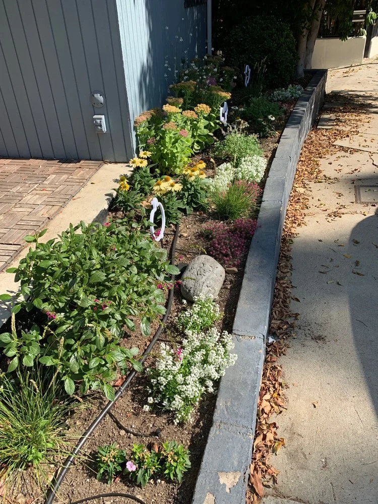 When prepping day came he was able to seal the side of the garden bed so water wouldn't get into the house, then the prepped the soil, planted everything, and installed sprinklers. Everything's blooming very nicely now with no die-offs, and we're getting a lot of compliments from our neighbors. I'd highly recommend working with Rafael if you like taking part in the process and collaborating with someone who is very knowledgable, efficient, and reliable.